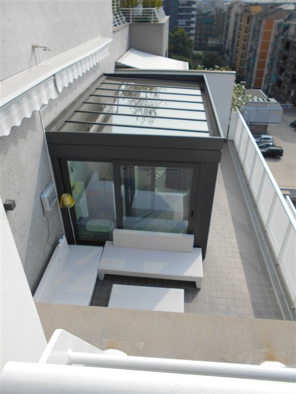 Proponiamo diverse soluzioni di coperture trasparenti, dove si utilizza solo il vetro, oppure questo abbinato all’acciaio, all’alluminio o al policarbonato. Il vetro e il policarbonato consentono di godere a pieno della vista esterna e di sfruttare al massimo l’illuminazione naturale. L’utilizzo dell’alluminio aggiunge un tocco di eleganza, oltre che risultare un ottimo isolante naturale. La sua resistenza, stabilità e facilità di manutenzione, assieme alla sua leggerezza, lo rendono uno dei materiali più utilizzati nella realizzazione di coperture. È anche ecologico, in quanto riciclabile al 100%.